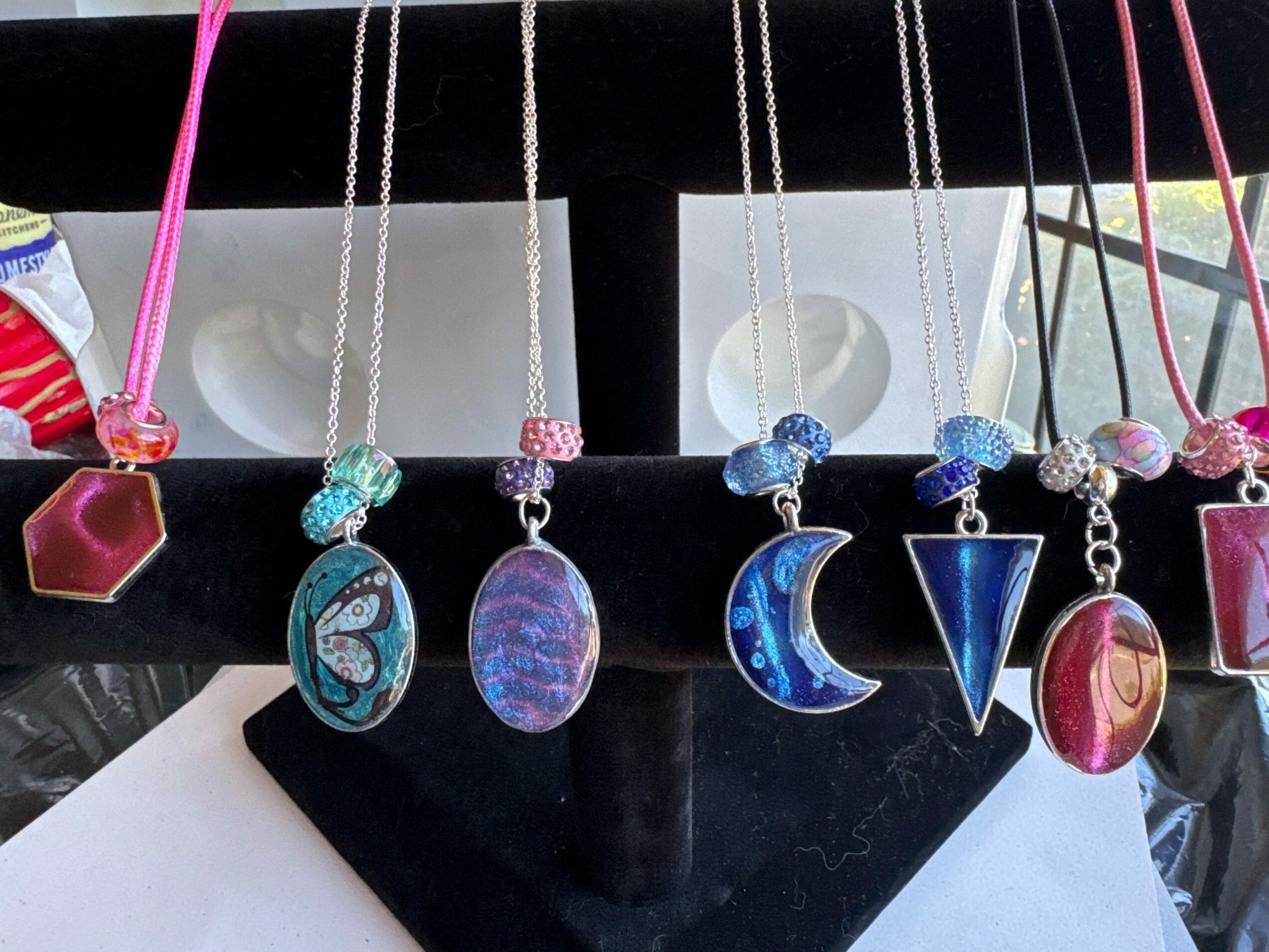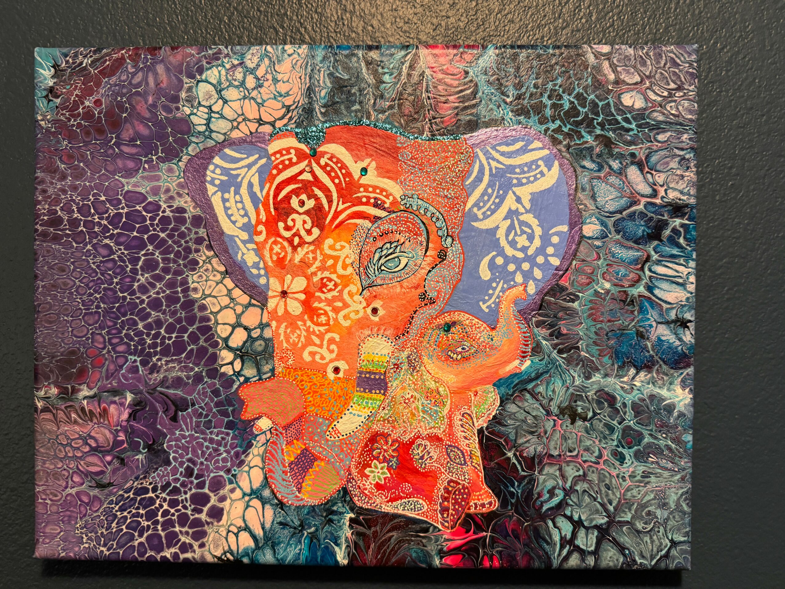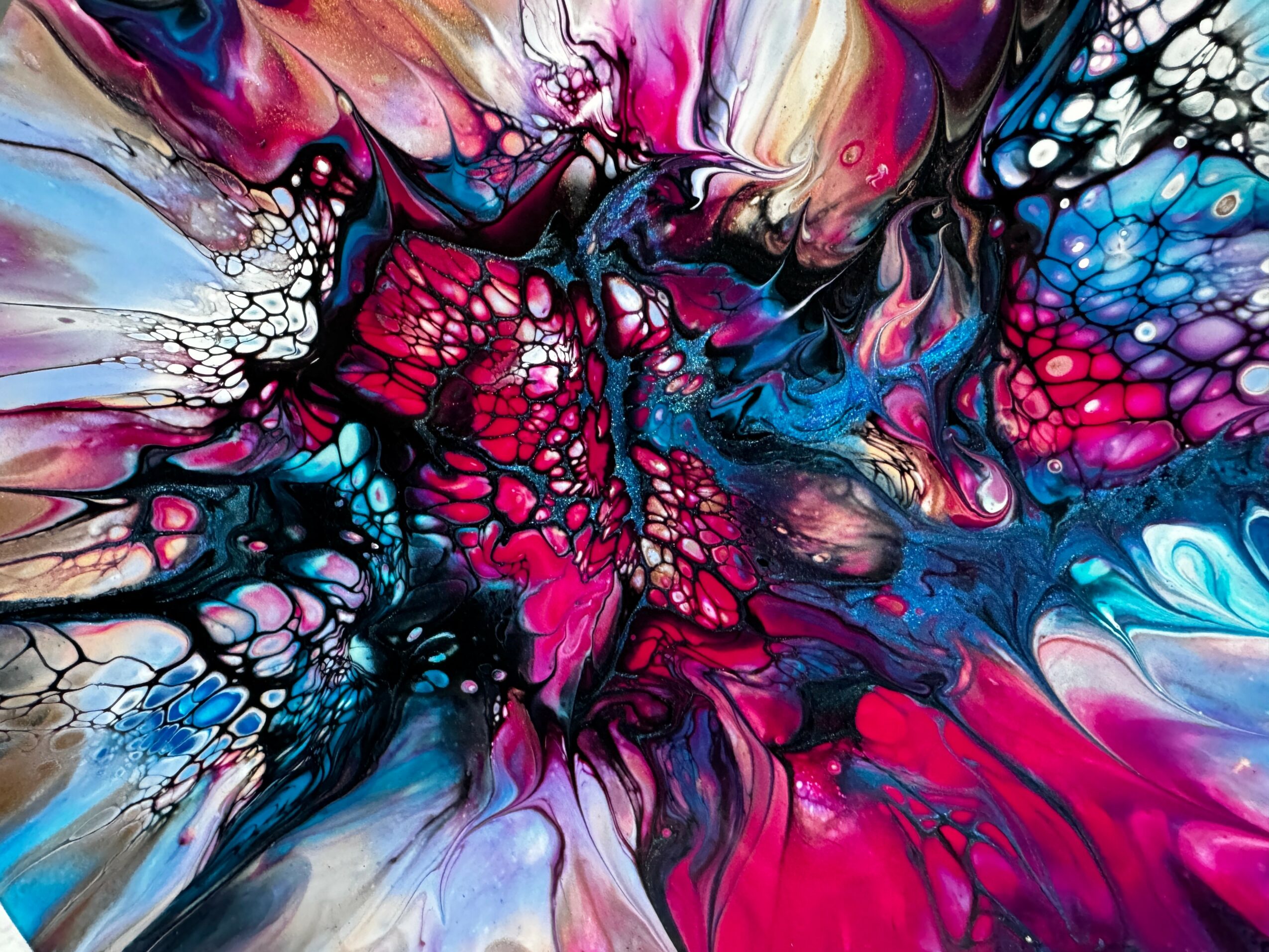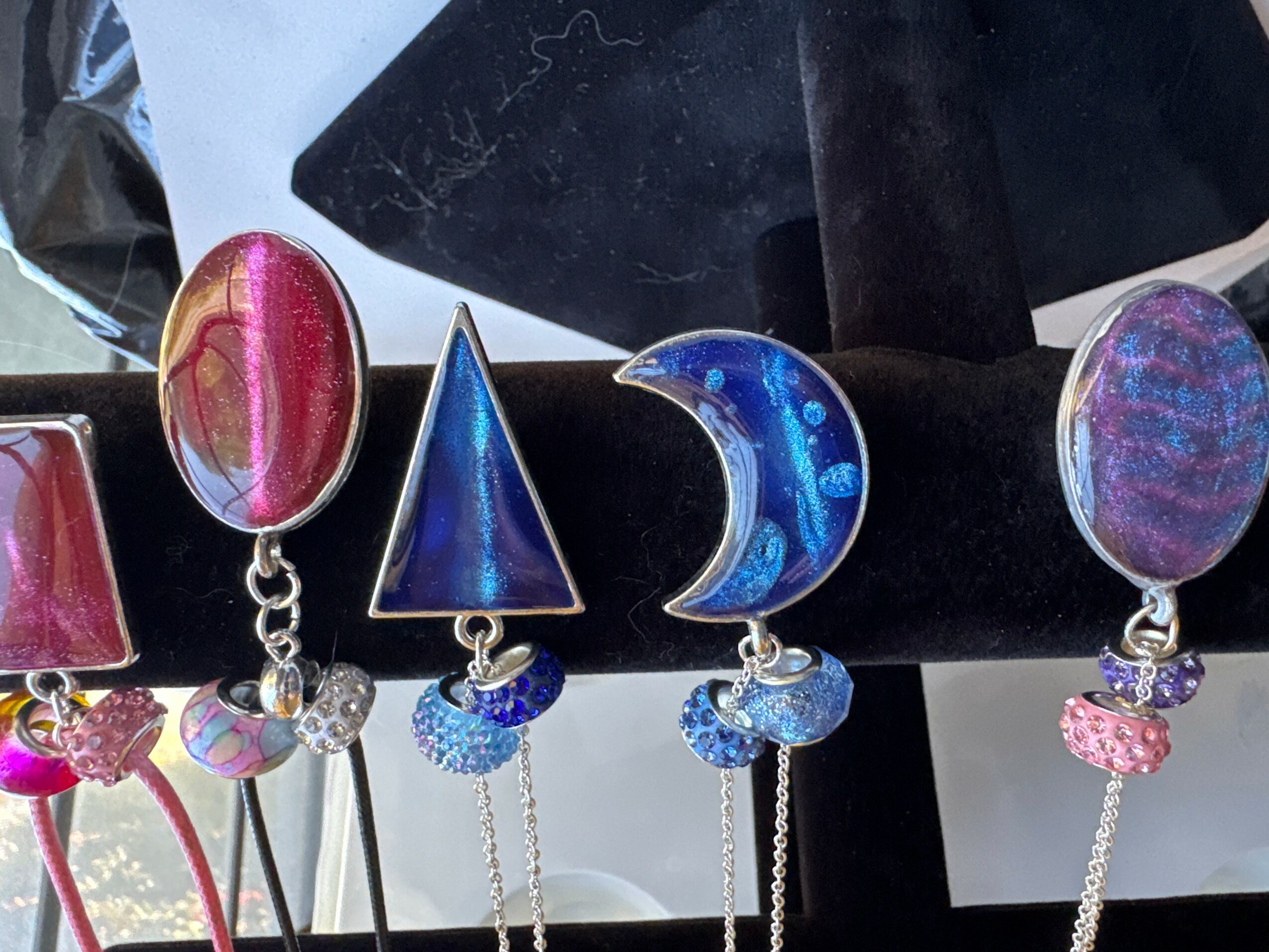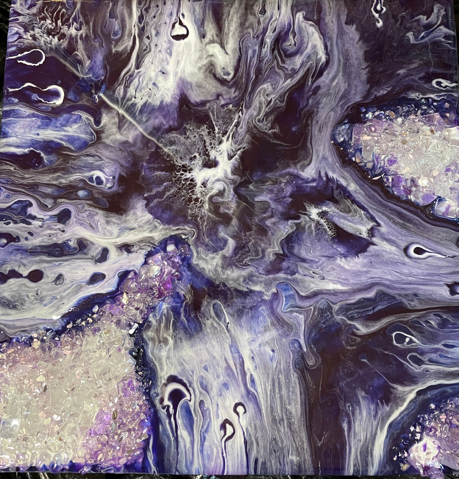 6 generations of artist in our family.?It was so inspiring to see all the awards of my mother’s art, Stores and boutiques started putting her art in there shops. That’s when I said to myself I wanted to do art in some way. Well I started working after school and I was modeling as well. At this point in my life I lived In Georgia. I ended up married with a baby and so I put things with me on hold till I could get back into some form of art. I started having people by word of mouth ask me to make murals in peoples homes and in there kids rooms..I really enjoyed doing that just to see them smile Made me so happy. I loved seeing the smiles on the owners faces and also when it was in a kids room how much they thanked me for making them have the best bedroom ever.. Even with both my daughters they would go in different stages in different ages and their rooms would reflect what they wanted and what age they were. Then Covid came along and stopped all that. So I started to do some small things here and there.. that brings me to now. ( I don’t know if you want this part of my story but thought I’d tell you and if you didn’t want it you could just remove) During the last several years I was having several medical issue’s and it became harder to do compared to what I used to be able to do. Having all the medical things from back surgery then total hip replacement, issues with my hands it kinda hit at the worst time. Once the doctors started to treat me I was getting better and started putting my art online. So many people loved how I could do so many different things and very creative. People said I should start posting my art online. So I decided well it can’t hurt and I can do it on the days I feel good. Then about 2 years ago my doctors said they have some tests they want to do because of everything I had been going through. So they ran all these test and found that I didn’t have RA like I had been told for approx 18 yrs but I have Scladerma , with connective tissue disease and on top of that the scladerma has moved into your lungs and that’s why you have a hard time breathing and the cough and all the pain. So progressive ILD (Interstitial lung disease is what is wrong with me. So with my love of art still I have made it my mission to make sure I make things that will inspire people to make them feel happy and smile whether my art is on their wall, a shelf, wearing it, or any other form. I let my artwork keep pushing me to learn more and other ways to show art and I make more things to try and make people as happy as they can be. When I started posting I was excited if I got one new follower. And it just really makes me want to make more things so everyone can enjoy a piece of my heart cause I do care about each of the pieces I make it truly comes from my heart and love. I do a lot of trying different ways of doing a piece cause I don’t want to just do a cookie cutter example of a piece. I want to bring it to the next level. I have so much passion for every single piece of art that I do. And I hope whoever ends up with one or more pieces feels this. I also do custom orders for example one piece was 5 feet by 3 feet and I had mixed 54 different colors and the weight of the paint was so heavy I had to have help tilting and turning the canvas. This piece was a fluid art piece. I also do realistic drawings and paintings as well. Another thing is I can make an angel piece with ashes ( cremations) and swirl with a favorite color of whom has passed. Also have 3 cats sizes and 3 dog sizes for baby to adult to do a memorial for the fur baby’s owner. Picture, hair clippings, tags all this can be done and a starry night is one that the mold I fill inside with resin and different layers to the top and the top has all the stars in it. It’s peaceful and gives a peaceful ending to their beautiful life. And to me as a artist you are constantly changing and you grow with each piece you do. I will never say I have perfected something but only because you are constantly evolving everyday of your life and that is how I want people to see my art. I wish for them to get a smile or feel more confident when they wear a piece of my jewelry or just make them happy cause as I said before each piece has my heart in it.i hope to be making art the rest of my life..