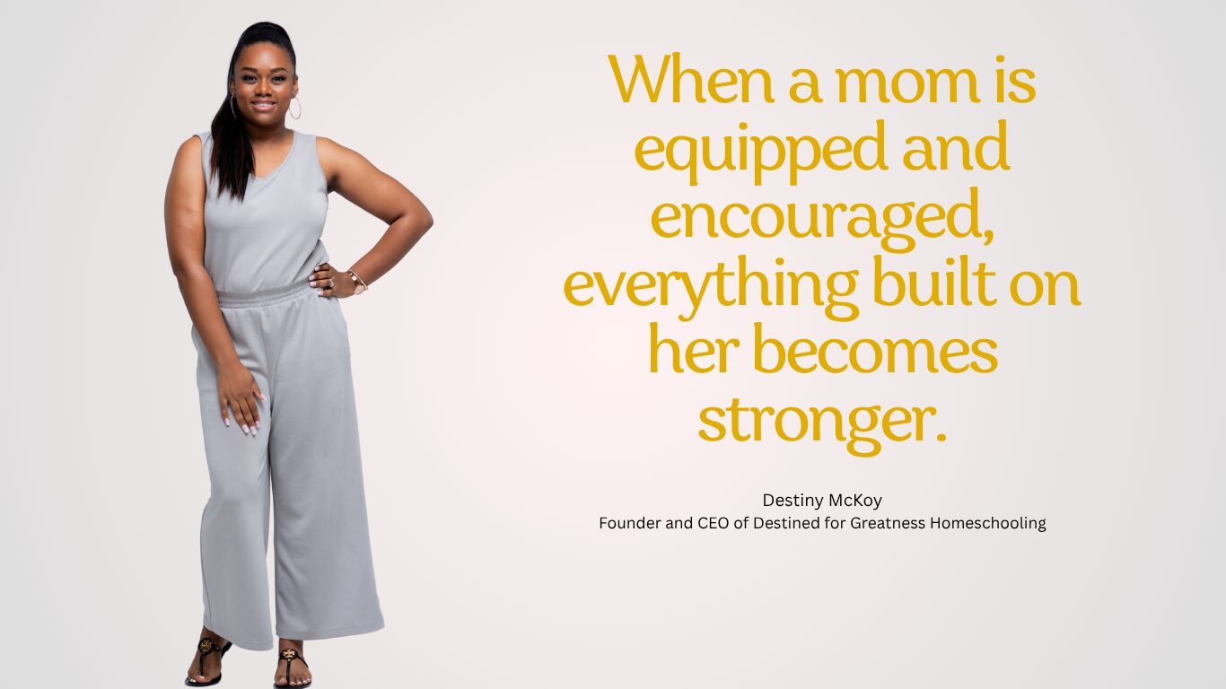 Hey! I’m Destiny McKoy, Mom and Wife, your Kingdom Homeschool Strategist and founder of Destined for Greatness Homeschooling. We are a faith-rooted movement helping moms rediscover who they are while raising the next generation of leaders.