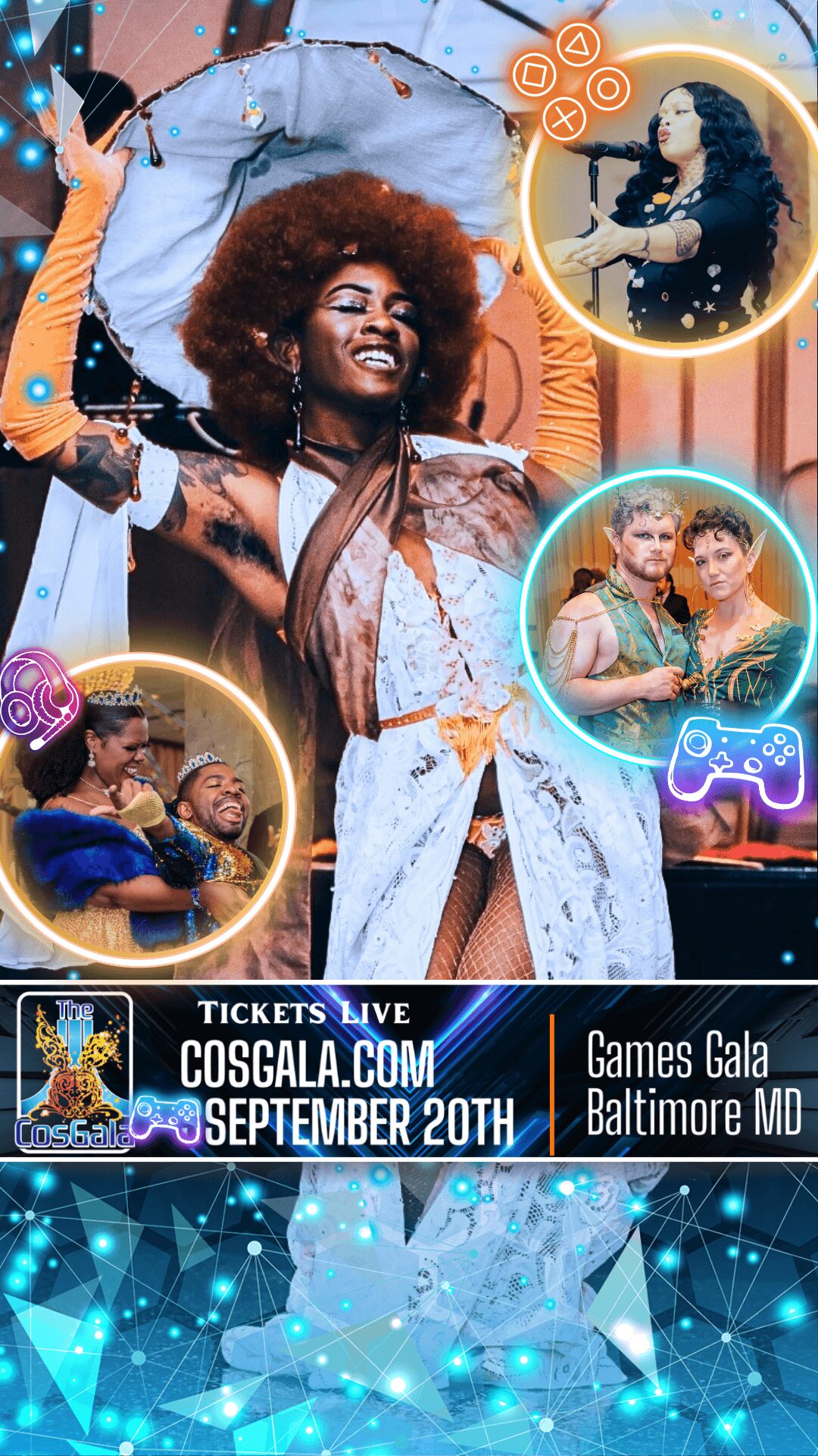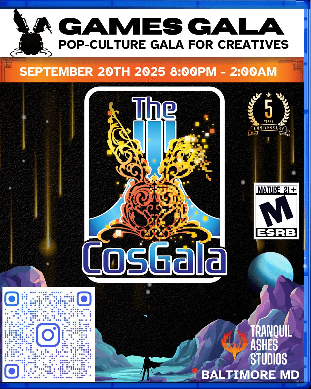My name is Anita Riggs and affectionately known as Tranquil Ashes. I am an Event Producer, Host, Cosplayer, Actor and overall media talent. I am a lover of travel and all things pop-culture. My time living in Italy and traveling to Carnival as well as my time spent behind and on stage living in Japan lead me to the path of creating my own Gala known as The CosGala. The CosGala is a platforming platform, that caters to creatives of all media genres This event brings creators together to enjoy a night of revelry, networking, comradery and sharing of ideas. All this while showcasing amazing local and abroad talents and couture costuming/gowns themed after each years changing theme. I wanted to make a space that was the “Met-Gala” for nerdy creatives like myself and this year, September 20th will be our 5th anniversary Gala!