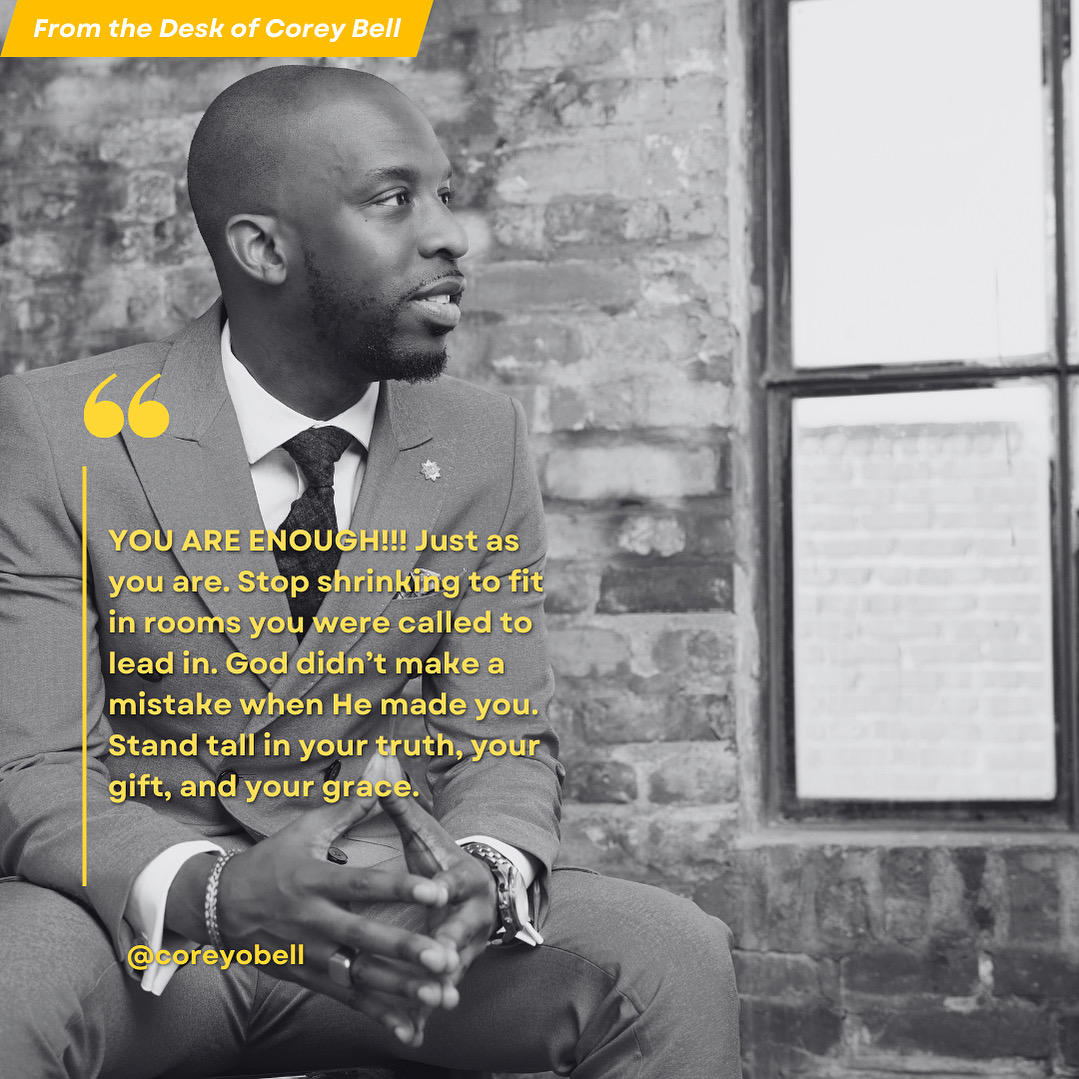 Sure. My name is Corey Bell, and I’m a 21st-century leader who believes in pushing boundaries and breaking molds. I have the incredible opportunity to lead a nonprofit called Corey Bell Ministries, where our focus is helping people discover who they really are and walk confidently in that identity.