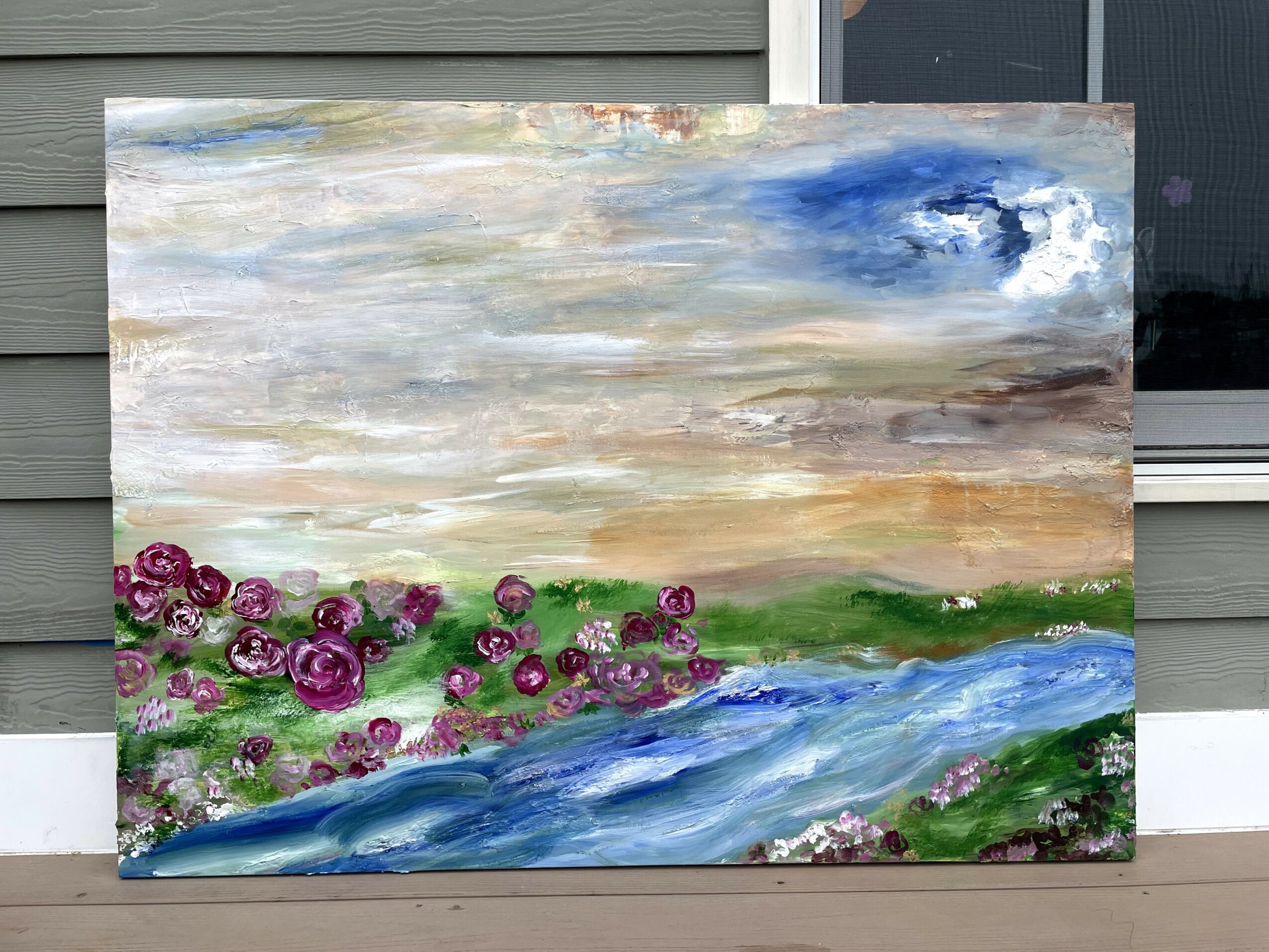 My artwork is really an exploration of nature through acrylic painting. Most of my pieces are highly textured with saturated colors. My style is mainly rooted in abstract expressionism, but my body of work has a wide range of being more abstract to more realistic. I want the pieces to make you feel like you want to reach out and touch them (and since they are acrylic, you can!), to feel like you can dive into almost a magical world or a secret garden.
